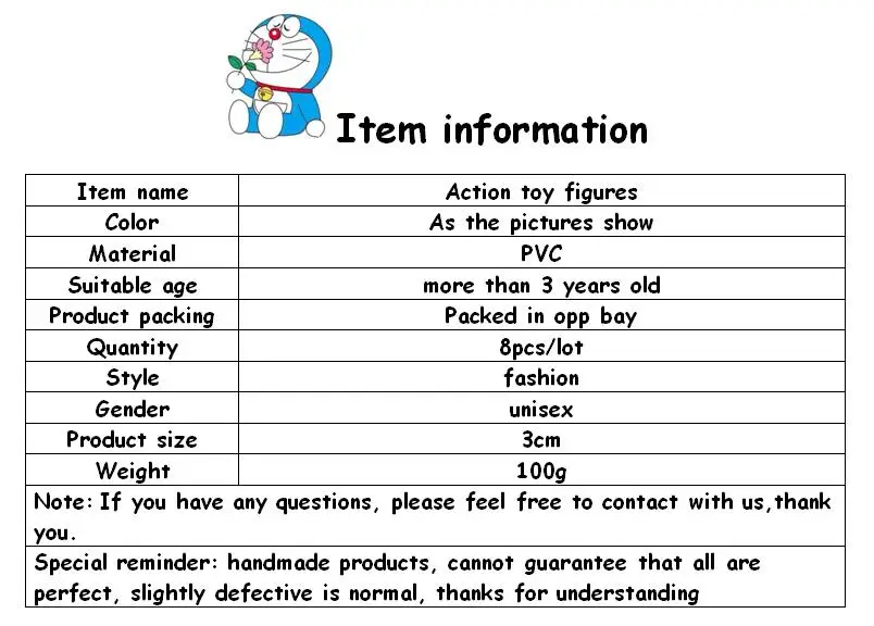 8pcs 3cm Anime Catoon Cute Doraemon Mini Dolls Pvc Action Figure